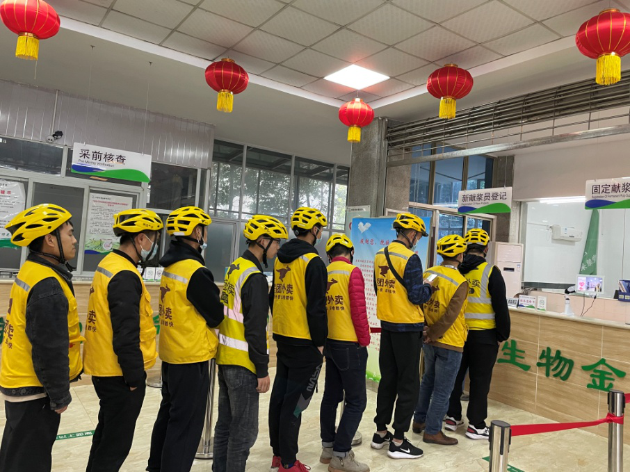 陽(yáng)春三月,草長(zhǎng)鶯飛,中國(guó)生物金堂血漿站迎來(lái)了20余位身穿亮黃工作服的美團(tuán)外賣(mài)騎手,他們此行的目的不是來(lái)送餐,而是來(lái)捐獻(xiàn)血漿,為他人的生命加油助力。